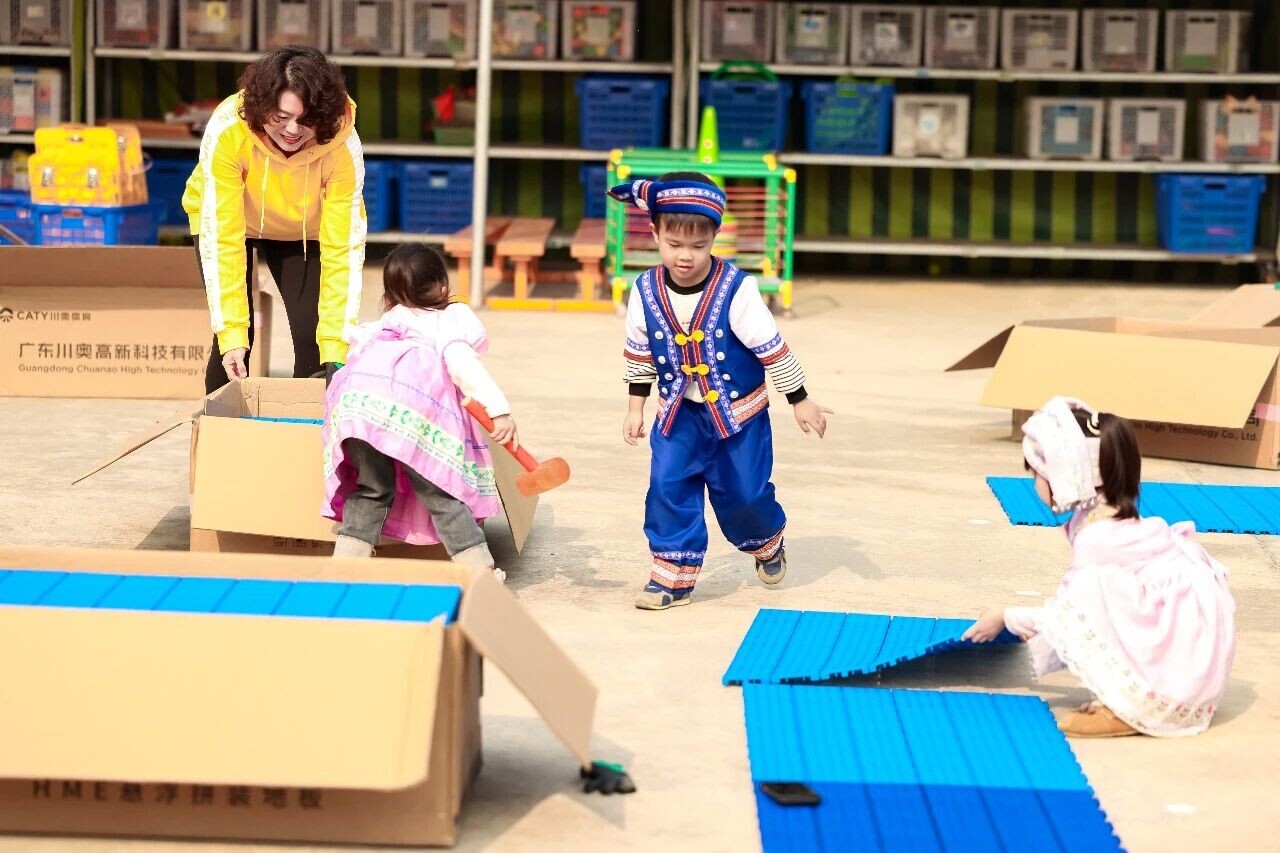 冬日桂南,暖意绵长。奈尔宝联合创始人徐晶、美团乐生活全国大客户负责人许凌莉、美团企业社会责任总经理、美团公益基金会秘书长周露、壹基金副秘书长聂良非等,作为志愿者在专业指导下,完成了拼接地板铺设、儿童游戏器材组装、特色运动游戏开展等工作。
