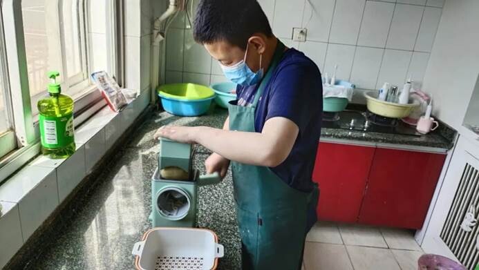 炒土豆丝、鸡蛋饼、油泼面......陕西榆林16岁孤独症男孩秉泽已经能独立做许多家常菜,他还获得过一个方便面大赛的周冠军。美食是秉泽最大的爱好,也是他提升实践能力、探索自主生活的途径。
